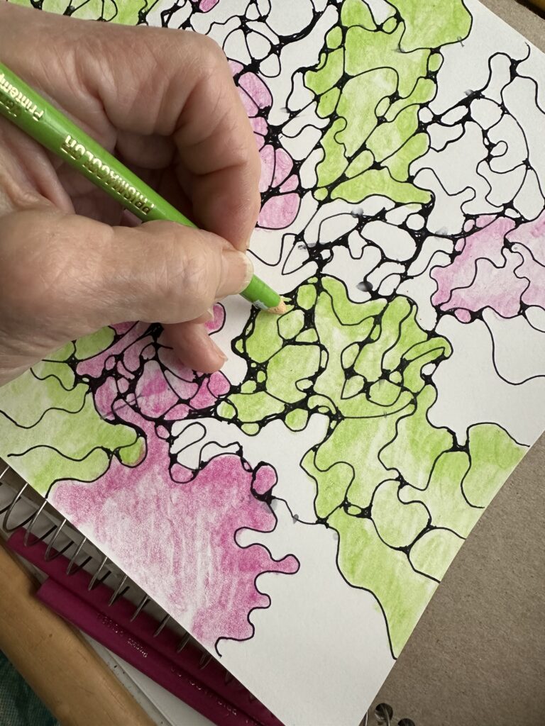 I’ve found a way to combine my love of creating with colors with my pursuit of freedom from habitual restrictions and internal conflicts. Let me introduce you to Neurographic drawing, and quite specifically to the systematic learning opportunities with Mindful Line.